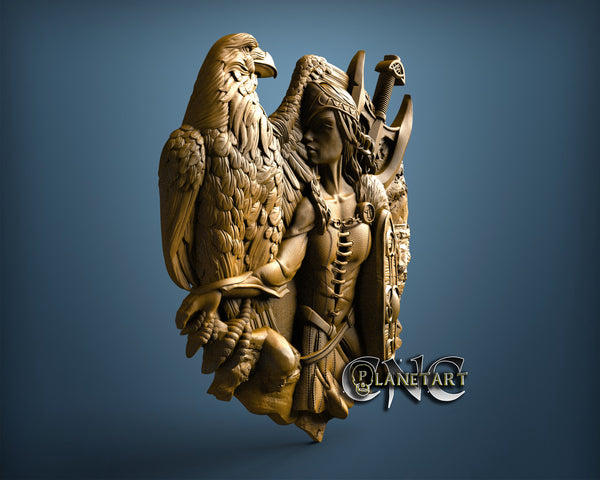 Viking Girl and Eagle, 3D STL Model 11730